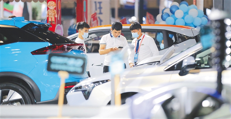 9月10日,在海南国际会展中心举办的2021海报集团金秋车展进入第二天,众多市民前往观展、购车。 本报记者 张茂 摄