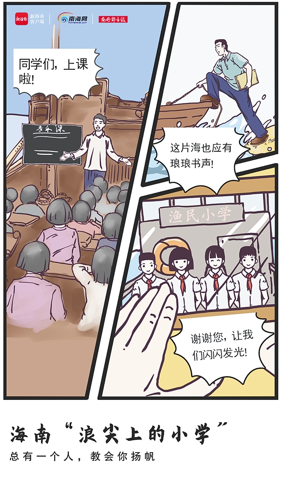 本报海口9月10日讯(海报集团全媒体中心记者林明洋)9月10日,新海南客户端、南海网、南国都市报策划推出《海南“浪尖上的小学”》原创条漫,讲述52年前,海上流动小学(现陵水黎族自治县新村镇渔民小学)老师渔船上办学的故事。条漫推出后,微博、微信、头条等平台阅读量超10万。