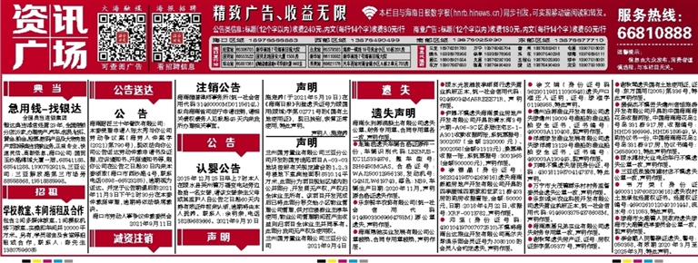 ●裴保杰不慎丢失儋州信恒旅游开发有限公司开具的中国海南海花岛收据两张,中国海南海花岛2号岛331栋917房,收据编号:HHD5166996、HHD5189549,认购协议书一份,中国海南海花岛2号岛331栋917房,协议书编号:G6589001,特此声明作废。
