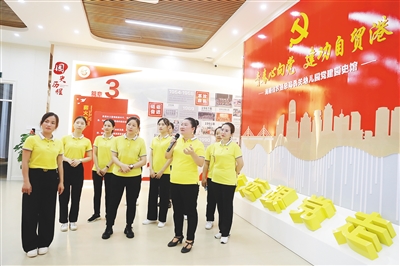 9月10日,海南省农垦总局机关幼儿园教师在参观党建园史馆。据了解,该幼儿园打造的党建园史馆旨在充分发挥学习和育人功能,并将其建成爱园、荣园的教育基地,为推进学前教育事业发展贡献力量。本报记者 张茂 摄