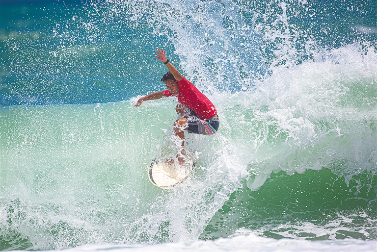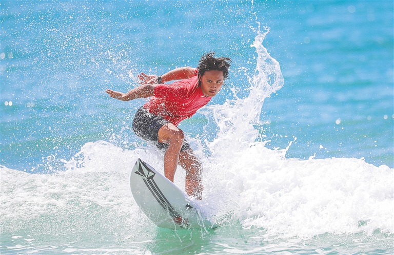 马福来说,冲浪对他来说绝对是全新的体验和挑战。但他也认为,运动都是相同的,冲浪的训练方法和手段可以下功夫学习。在海南体育职业技术学院的支持下,海南冲浪队成立后先后聘请了澳大利亚籍和美国籍外教。“他俩的执教能力很强,我也从他俩身上学了不少东西。”马福来说,例如,美国外教使用视频同框的手段,分析海南队队员的技术优缺点。最近一年多因为疫情原因,马福来只能和外教通过视频联系。