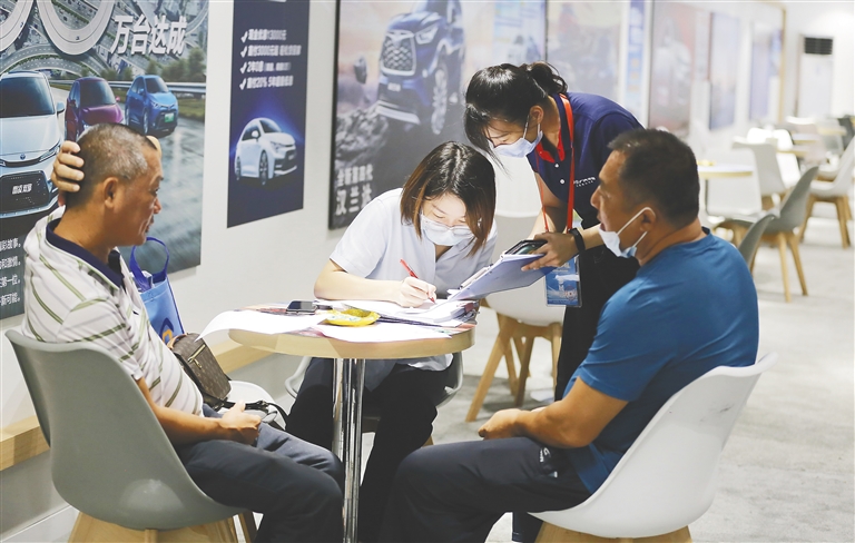 本报海口9月11日讯 (记者孙慧)9月11日,2021年海报集团金秋车展第3天, 据车展组委会介绍,今天进场观众达到4.2万多人次,销售和预订辆车1311辆,销售额1.9亿多元,是近几年来车展单日销售车辆、销售量的最高纪录。