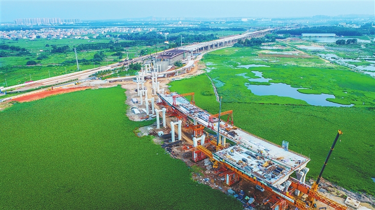 9月12日,俯瞰正在加速建设的G15沈海高速公路海口段。该项目是G15沈海高速和G75兰海高速在海南建设的“最后一公里”。目前该项目主体工程完成量超过60%,建成后将极大满足新海港疏港交通需求。本报记者 张茂 摄