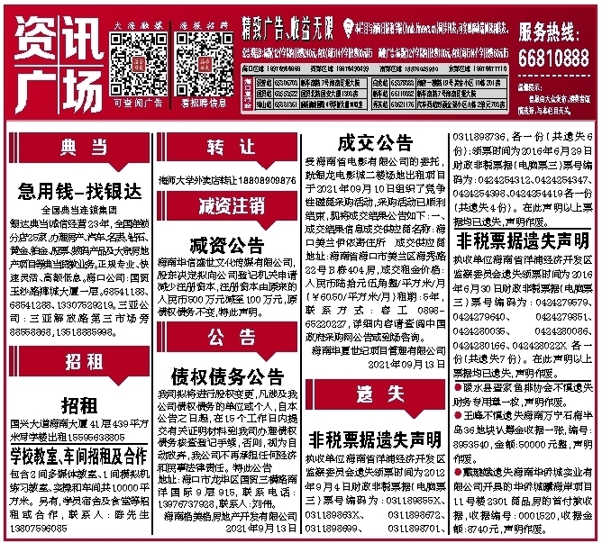 银达典当诚信经营23年,全国连锁分店25家,办理房产、汽车、名表、钻石、黄金、铂金、股票、数码产品及大宗房地产项目等典当贷款业务。正规专业、快速灵活、高额低息。海口公司:国贸玉沙路椰城大厦一层。68541188、68541288、13307529219。三亚公司:三亚解放路第三市场旁 88558868,13518885998。