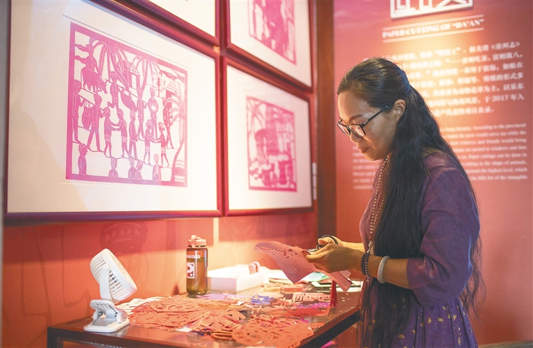 抖音成了张潮瑛展示黎锦制作技艺和传播黎锦文化的新平台。而事实上,近两年来,在抖音上传播非遗文化,已经成为一种趋势。今年6月12日,抖音平台发布了《抖音非遗数据报告》。报告显示,截至今年6月10日,抖音平台上国家级非遗项目相关视频数量超过1.4亿;1557个国家级非遗项目抖音覆盖率达97.94%。