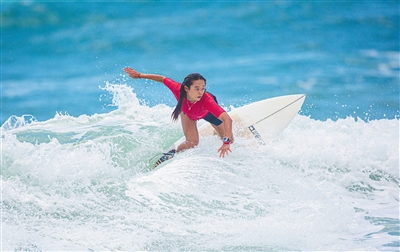 冲浪比赛中,运动员的成绩通常取两组技术动作的得分之和。裁判会综合考量运动员的速度、力量以及连贯性,如果运动员对浪况的把握较好,完整地完成高难度动作,将获得更高的分数。“两组动作合计满分20分,目前国际上最高水平能拿到19分。”黄莹莹说,她目前最高只有15分,离国际顶尖水平还有很大的差距,“还要更加刻苦训练,才能在奥运舞台上取得好的成绩。”