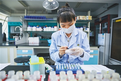 9月8日,在海口海关技术中心,技术人员正在实验室里加班加点地进行着各类免税商品和入境货物的质量检测。本报记者 封烁 摄