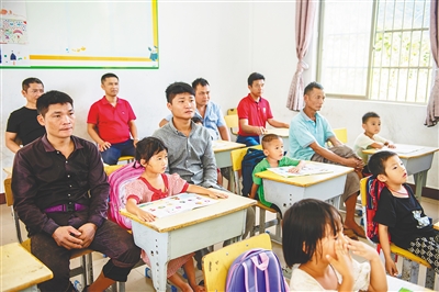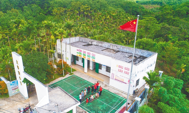 9月13日,万宁市北大镇禄马学校大华寮村教学点比往常喧闹,当天的升旗仪式,家长也来了。