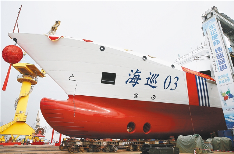 “‘海巡03’轮列编后将成为海南海事局最大最先进的海事执法船艇。”海南海事局有关负责人表示,“海巡03”轮顺利下水列编后,必将成为助力交通强国建设的海事重器、服务构建一流海事的监管利器、打造海南自贸港海事特区的深蓝锐器,全面提升海南海事监管装备水平,彻底解决海南海事现场执法“到不了”的问题,真正实现辖区海事监管能力的全覆盖,为海南自贸港海上交通安全提供更加高效务实的保障。