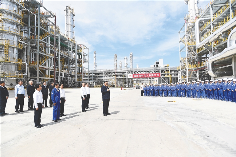 13日上午,习近平首先来到国家能源集团榆林化工有限公司,了解循环经济煤炭综合利用项目规划建设运行情况。在中心控制室,习近平观看项目产品展示,对企业坚持创新发展,坚持安全、稳定、清洁运行的做法表示肯定。随后,习近平到年产40万吨乙二醇项目现场察看,询问煤化工深度发展有关情况,同企业职工代表亲切交流。他强调,榆林是国家重要能源基地,为国家经济社会发展作出了重要贡献。煤炭作为我国主体能源,要按照绿色低碳的发展方向,对标实现碳达峰、碳中和目标任务,立足国情、控制总量、兜住底线,有序减量替代,推进煤炭消费转型升级。煤化工产业潜力巨大、大有前途,要提高煤炭作为化工原料的综合利用效能,促进煤化工产业高端化、多元化、低碳化发展,把加强科技创新作为最紧迫任务,加快关键核心技术攻关,积极发展煤基特种燃料、煤基生物可降解材料等。