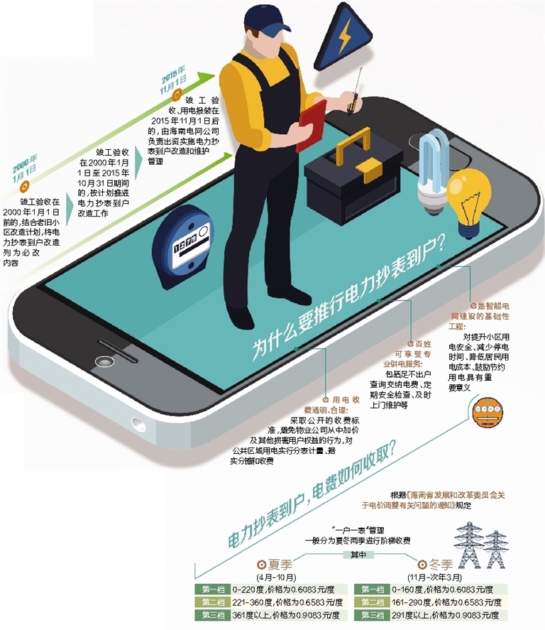 海南日报记者调查了解到,为了加快推进电力抄表到户改造工作,从2020年6月起,海口供电局和海口市住建局联合开发了线上表决投票平台,并联合多个部门和单位,发动存量小区召开业主大会,支持小区进行电力抄表到户改造。