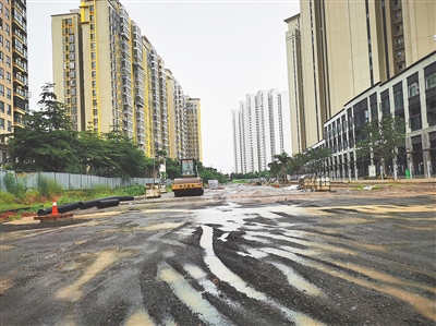 为何小区已交付,但是出行道路却未建成?融创金成海口壹号小区开发建设方相关负责人郭可超称,按照计划工期,两条道路本应在小区交付前开通,但是这两条道路交会处有一座建筑未及时搬迁,导致两条道路下方管网工程无法施工。如果不建设好下方的管网(包括雨水管网)工程就将路面硬化,道路上的积水就无法及时排泄,很容易导致小区积水。