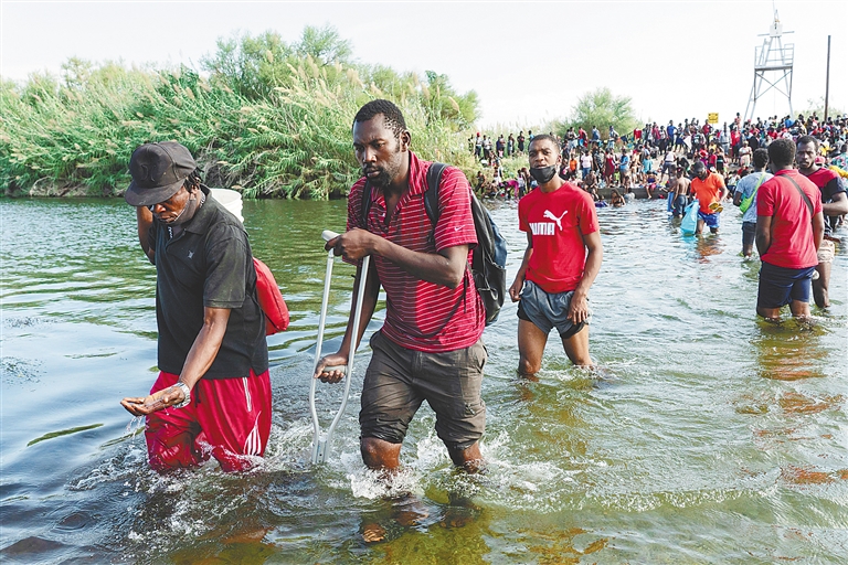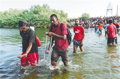 美国中南部得克萨斯州州长阿伯特16日下令关闭该州位于美国和墨西哥边境的6处入境口岸,以应对边境非法移民危机。综合美国媒体报道,在得州西南小城德尔里奥,当局划出德尔里奥国际桥的部分桥下区域作为等待申请避难的非法移民临时营地。一周前,这座营地里只有数百名非法移民,但到16日,已激增至9000人左右,多数来自海地。市政官员预期未来数日内,还可能有大量非法移民越过美墨边境深仅及膝的河水涌向这座小城,美国边境执法部门表示将增派更多人手处理大量非法移民聚集问题。 新华社/路透