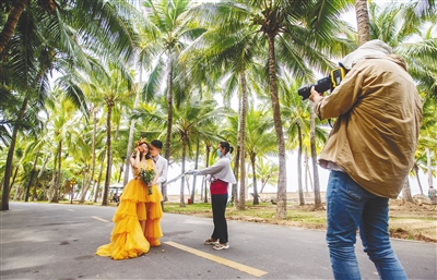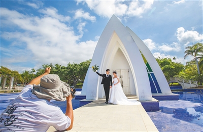 “目的地婚礼产业是在旅游新业态创新发展和婚庆市场需求快速增长的多重背景下产生的,并在‘旅游+’的产业融合理念下逐步形成。据不完全统计,三亚目前有大大小小婚纱摄影机构超过300家,此外还有50多家专业婚礼策划公司,各大景区、酒店多数都提供婚庆相关服务。”许伟介绍。