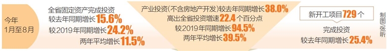 本报讯 (记者陈雪怡 通讯员吴璟)今年1月至8月,全省固定资产完成投资较去年同期增长15.6%,较2019年同期增长24.2%,两年平均增长11.5%。这是海南日报记者近日从省统计局了解到的。
