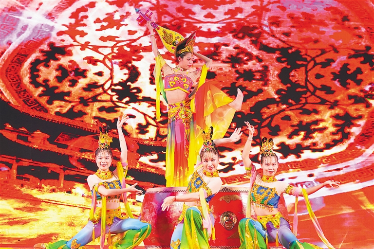 此外,古典舞《鼓上飞天舞》、民乐二重奏《春江花月夜》、武术表演《中华武术》、歌伴舞《久久不见久久见》、琼剧《和亲风云》等,一腔一韵,无不展示出传统文化艺术的魅力,赢得现场观众如潮的掌声不断。