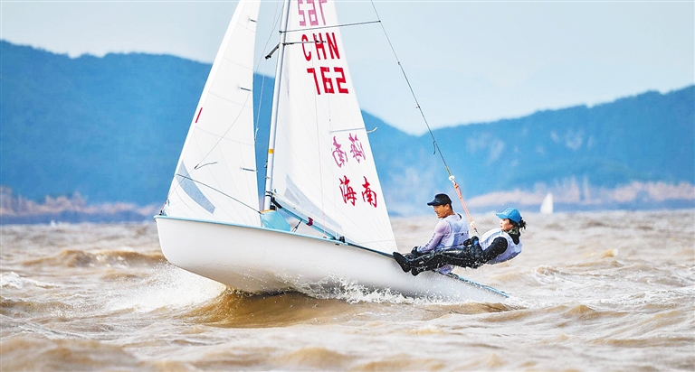 当天,全运会帆船比赛(宁波赛区)迎来收官战。海南队的王伟东/谢金莲、符倩/邓道坤经过前6轮的角逐,以总分25分位列第三,与第二名的浙江队仅有一分之差。这是自毕焜摘金后海南帆船帆板队在本届全运会上获得的第二枚奖牌。
