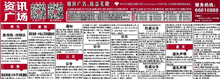 受委托,定于2021年10月11日10时至2021年10月12日10时止(延时的除外)在京东网络拍卖平台(http://zichan.jd.com)进行净价拍卖:儋州市人民西路电力村A栋401房(建筑面积77.09m2),参考价:21.5616万元,竞买保证金:2万元。展示时间:2021年9月16日至17日。有意向竞买人须登录和注册京东账号并通过实名认证,具体要求详见网络拍卖平台《拍卖公告》、《竞买须知》。电话:15607579889王先生;地址:海口市国兴大道5号海南大厦主楼41层。