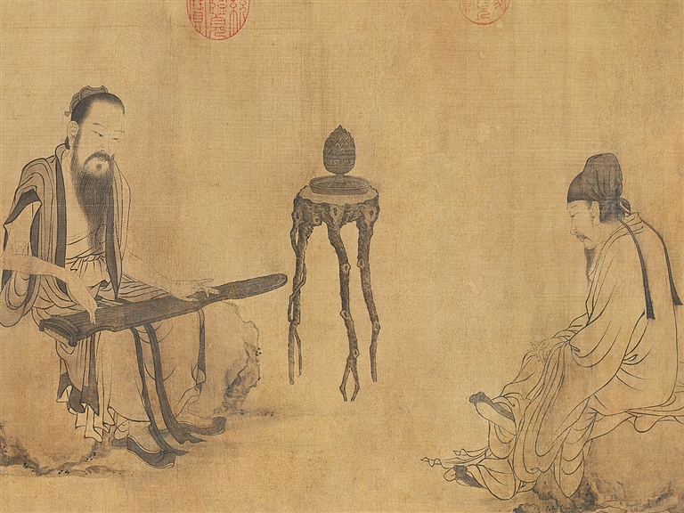 《伯牙鼓琴图》是元代画家王振鹏创作的一幅绢本墨笔画作品,现收藏于北京故宫博物院。