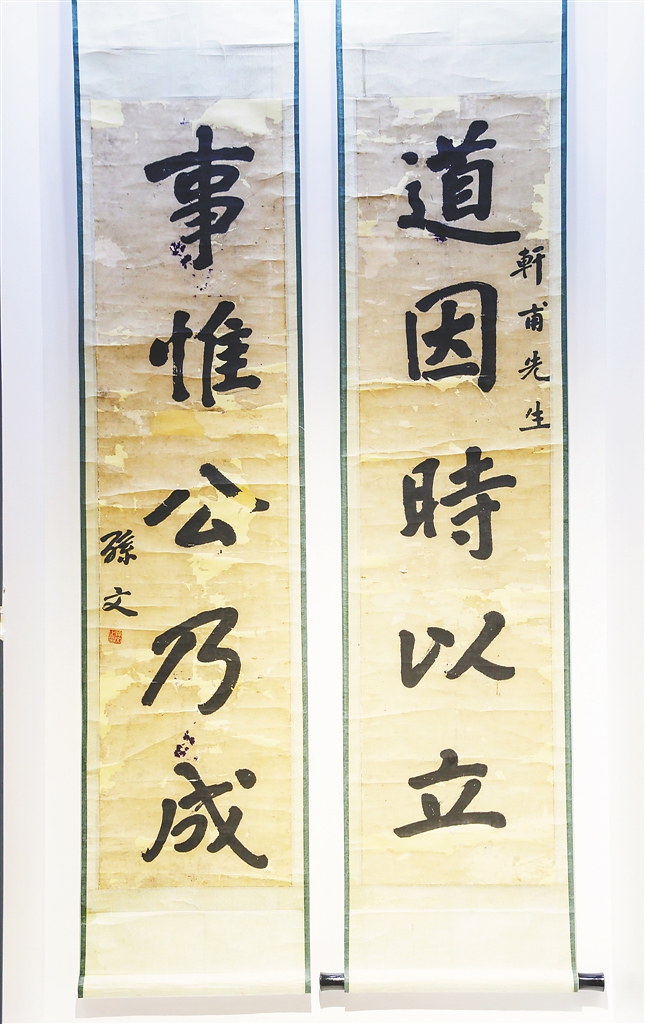 “2016年6月,孙中山中文秘书林树椿的后人向省档案馆捐赠了这副孙中山手写的对联。”海南省档案馆征集编研处一位工作人员还清楚地记得,当时,林树椿的大儿子林鸿顺已86岁高龄,他缓缓从白色布袋中抽出这副对联,用微颤的双手轻轻打开。他说:“终于给对联找到了最好的归宿。”