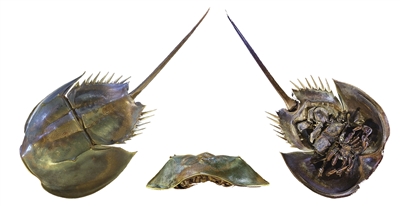 与许多海洋生物一样,我对鲎(hòu)的认知,也是始于儿时的餐桌。福建人有吃鲎(中国鲎,也叫中华鲎、东方鲎、三棘鲎)的历史。大概到我上中学时,中国鲎的资源越来越少,成为福建省重点保护野生动物,捕捉、贩卖、食用中国鲎都是违法的行为,卤肉摊上也没有了鲎的踪迹。
