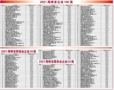 为全力推进海南省大企业高质量发展,充分发挥我省大企业促进海南经济增长的示范作用,加速海南企业转型升级,助推海南自贸港建设。海南省企业联合会、海南省企业家协会在省政府有关主管部门的大力支持下,经相关部门推荐,在海南省企业自愿申报的基础上,参照国际上通行的做法,以2020年企业营业收入为入围标准,排序出2021海南省企业100强、2021海南省制造业企业35强、2021海南省服务业企业50强,现将名单予以公示。公示期间无异议,将进行公开发布。公示期:2021年9月28日至10月8日,电话:(0898)66538930、13158999508,传真:(0898)66569396。