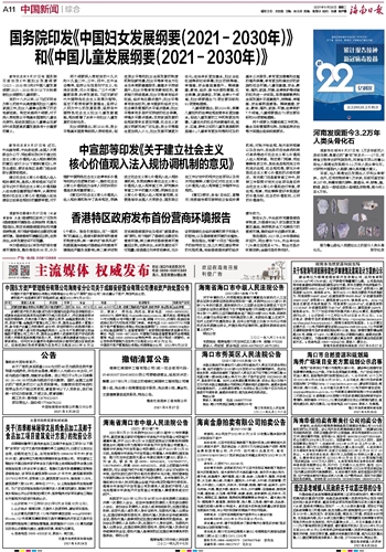 国务院印发《中国妇女发展纲要(2021-2030年)》和《中国儿童发展纲要(2021-2030年)》