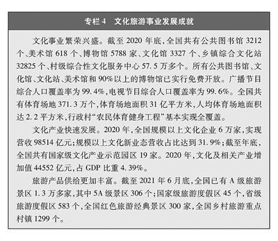 影视出版繁荣发展,“暑期档”“国庆档”“春节档”大片云集,精品图书不断呈现,人们享受越来越多的高品质文化盛宴。文化娱乐领域乱象有效整治,天清气朗风气正在形成。中外文化交流日益扩大,人们不出国门也能欣赏世界顶级文艺演出。文化与旅游融合发展,旅游景区、休闲度假、乡村旅游、红色旅游等旅游产品文化内涵不断提升,成为传播社会主义核心价值观的重要渠道、满足人民群众文化和旅游消费需求的重要方式、展示美丽中国的重要窗口,人们在行走中华大地、领略大好河山中感悟中华文化之美、陶冶心灵情操。全民健身热悄然兴起,从竞技体育到群众性体育活动,从国际赛事摘金夺银到闲暇时跳起欢快的广场舞,全民健身强健着民族筋骨、强大着民族力量,中国正在从体育大国迈向体育强国。