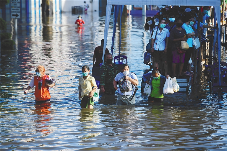 近日,受热带风暴“电母”影响,泰国大部分地区连降暴雨,导致泰国多地遭遇水灾,不少民宅、道路被淹。新华社/路透