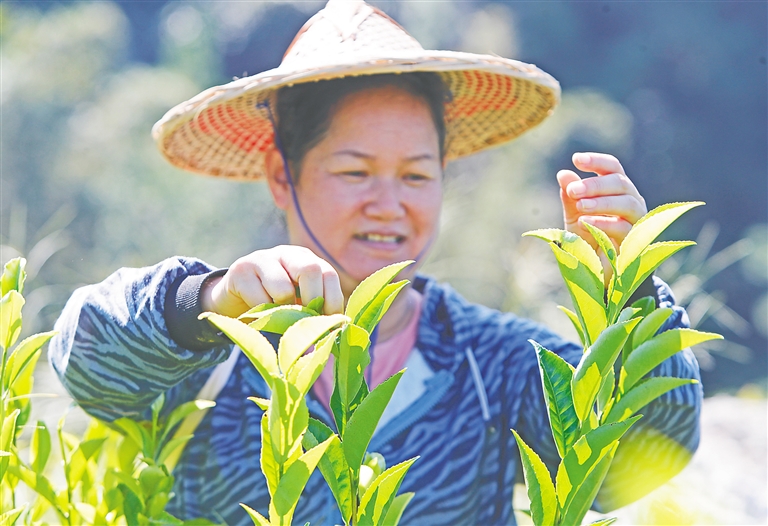 在茶园里,王德期告诉记者,正是有了这片生长良好的森林涵养,茶树生长的茶叶品质才会被看好,近年来,他在政府和企业的技术指导下,努力提升种植技术,茶园收入在不断增加,“前几年,种茶只够温饱,现在,种茶可致富。”