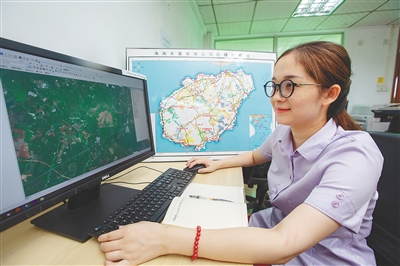 在遥感所的工作室,工作人员打开“海南农垦土地利用动态遥感监测平台”的界面,点开其中任一地块,便可一目了然地看到该地块的土地利用现状、多规合一情况等。
