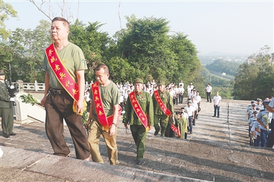 9月30日,在儋州市烈士陵园,老兵代表祭奠革命先烈。通讯员 黎有科 摄