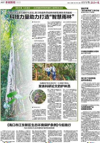 本报记者走进尖峰岭生态站,探寻构建热带雨林科研监测体系的秘密——~~~
