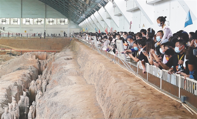 游客在陕西西安秦始皇兵马俑博物馆参观。