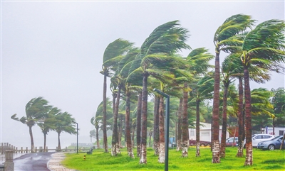 十月八日,受台风“狮子山”影响,海口西海岸出现强风雨天气。 本报记者 陈元才 摄