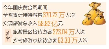 本报海口10月8日讯 (记者赵优 实习生陈梦馨 通讯员李艺娜)今年国庆黄金周期间,全省累计接待游客370.22万人次,实现旅游总收入58.82亿元。这是海南日报记者10月8日从省旅文厅获悉的。