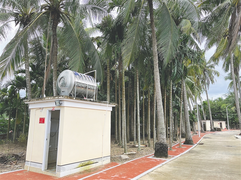 10月7日上午,海南日报记者来到三亚市海棠区南田居龙楼小组田湾队时,最先映入眼帘的是立在村里主干道边的椰树下,多个黄墙、平顶的小型厕所,它们对应着一户户农家。
