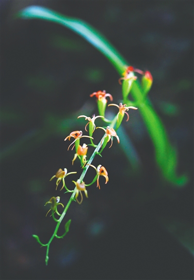 火焰兰喜好生长在稍低海拔处的山林里,长着圆柱形且呈攀缘状的茎,花序与叶对生,花苞片虽小,但颜色火红娇艳犹如火焰,而且最近它又新添了一“头衔”——“国家重点保护野生植物”。据悉,国家林业和草原局、农业农村部于今年9月发布公告颁布了新的《国家重点保护野生植物名录》,在这份最新调整的《名录》里,共列入国家重点保护野生植物455种和40类,让海南热带雨林国家公园管理局及众多植物保护工作者感到欣喜的是,在海南兰科植物中,金线兰属、兰属、兜兰属、火焰兰属共计4属21种入选这一新《名录》。