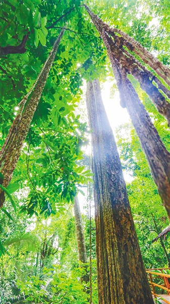 目前,海南热带雨林国家公园体制试点区已被国际环保组织确定为全球34个生物多样性热点区之一,生物多样性指数最高达6.28,与巴西亚马逊雨林相当。热带雨林无疑是琼岛腹地最亮眼的一抹绿意。