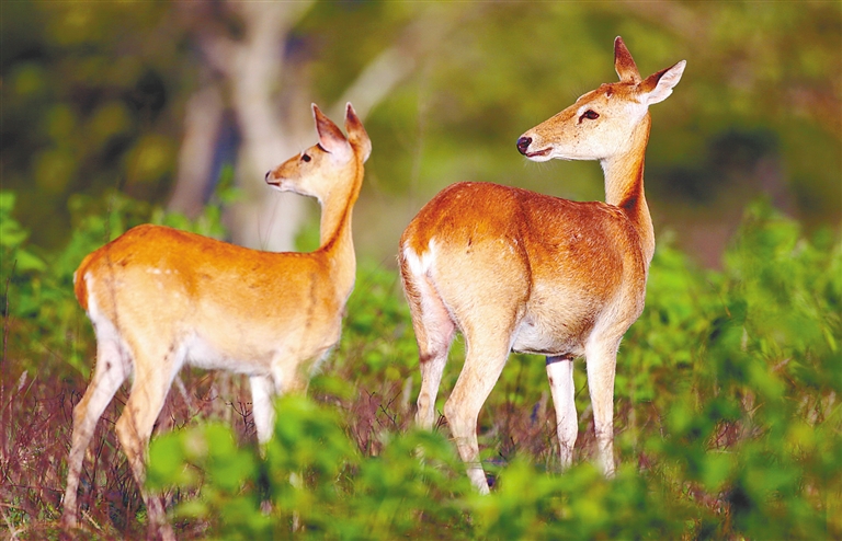 海南坡鹿是泽鹿的四个亚种之一,曾广泛分布于琼岛丘陵、台地,是国家一级保护动物。由20世纪的濒临灭绝,到如今数量逐渐增多、种群逐渐稳定,坡鹿成为海南绿色生态的一张名片。