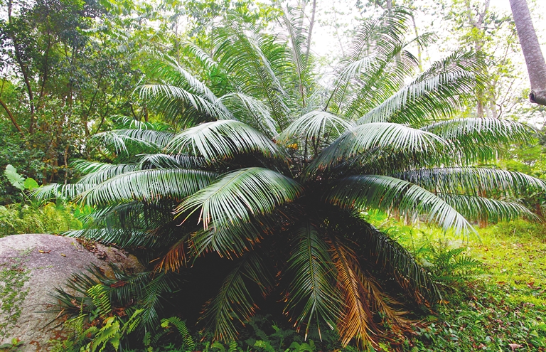 苏铁类植物起源于3亿多年前的晚石炭纪,海南热带雨林中分布有海南苏铁、葫芦苏铁、龙尾苏铁、台湾苏铁等四种苏铁类一级保护植物,其中海南苏铁为特有种。