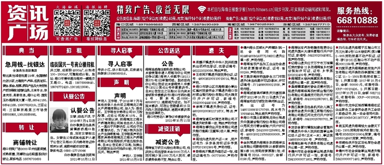 ●李彬不慎遗失身份证,证号:46020020030217187X,特此声明。