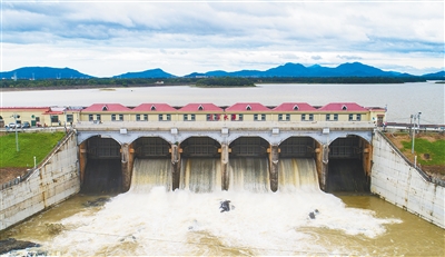 ①万宁水库开闸泄洪现场。 本报记者 袁琛 摄