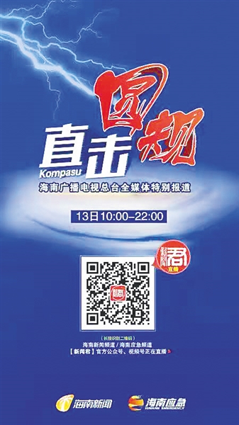 海南广播电视总台将派出50路记者奔赴全岛防汛抗风重点区域,第一现场报道全省各地各部门防御台风最新动态,第一时间发布台风预警预报、实时交通路况、防灾避险应急知识等实用服务信息,以及各市县迎战台风“圆规”的实时动态。