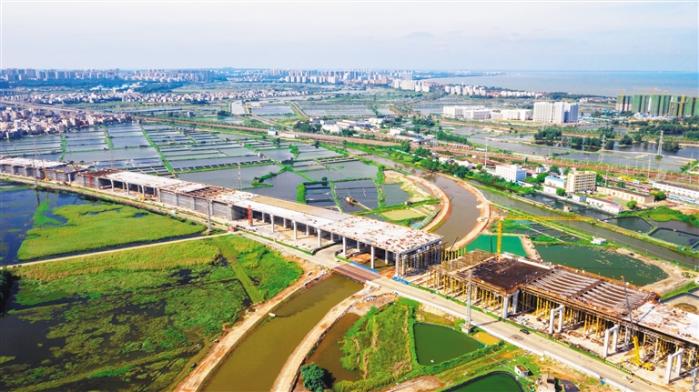 10月12日,G15沈海高速公路海口段项目的工人抢抓工时,推进工程进度。目前该项目路基工程完成83%,桥涵工程完成80.7%。本报记者 李天平 摄