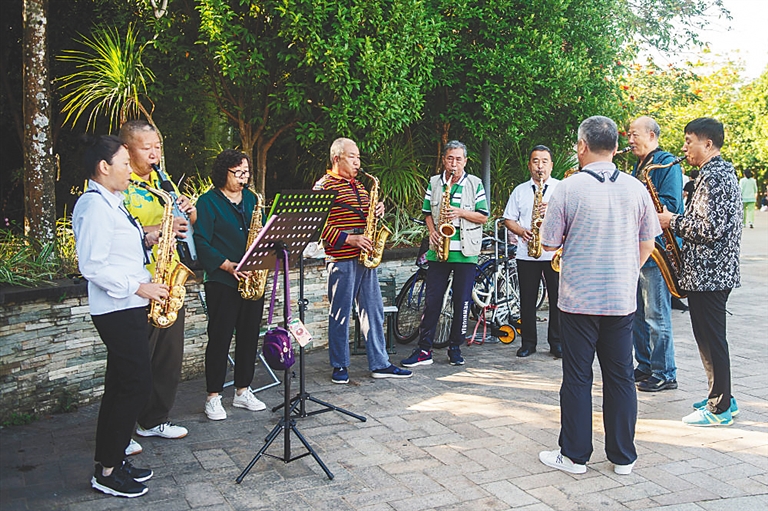 71岁老人胡晓文加入夕阳红后,待在海南的时间越来越长,最开始只待一个月,现在每年在定安至少要住上5个月。“我是奉献者,也是受益者。声乐、绘画、书法这里都有,这是老有所乐;生病了、水电坏了,一个电话就有志愿者来帮忙——我深深体会到了老有所依。”