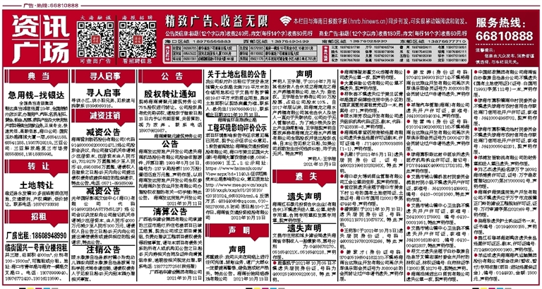 ●孔敏(于2021年5月1日)遗失居民身份证,证号:46902319981025298X,特此声明。