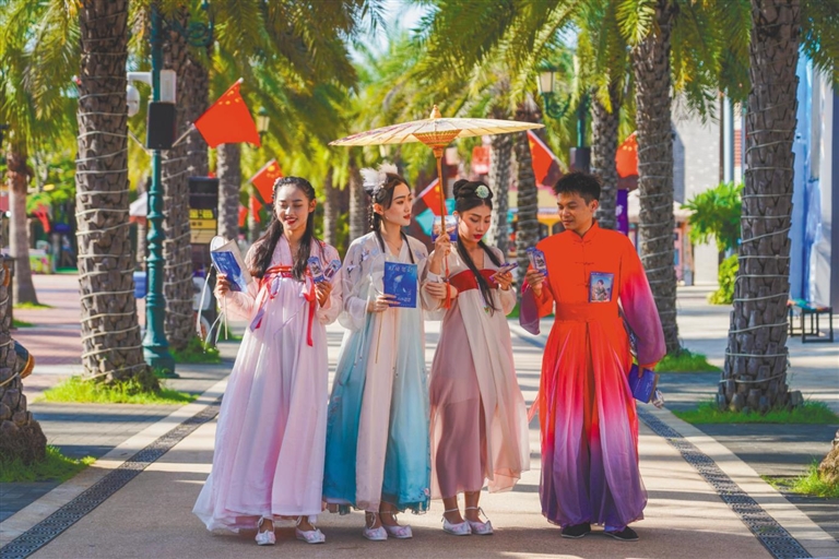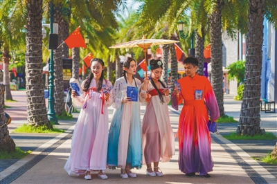伴随着国风国潮的火热,旅游业也不断探索新玩法、新产品。从穿汉服免费畅游旅游景区,到形式多样的国风国潮主题文旅活动,再到将国风国潮元素运用到旅游商品中,如今,“国风+旅游”“国潮+旅游”跨界融合产品不断在海南涌现,多点开花。