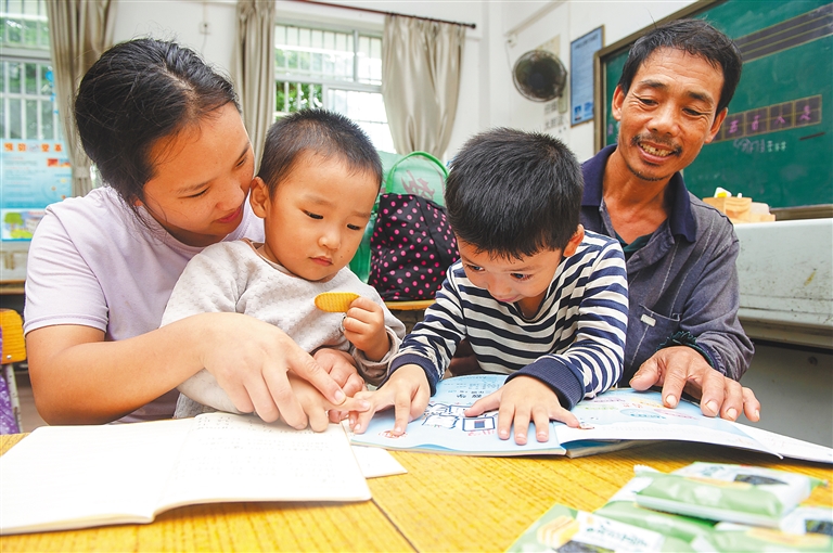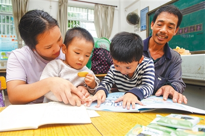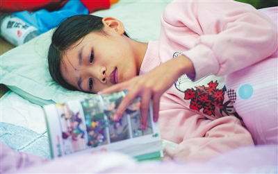 10月13日,在琼海潭门镇中心小学安置点,一位学生在看书。本报记者 袁琛 摄