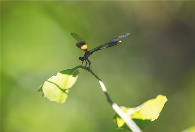 着一身光亮翠绿,金黄色斑块点缀在流光溢彩的双翅间,几抹神秘的银灰与黑亮又添了几分高贵,无愧“蝶中皇后”之称。作为我国唯一的一级保护蝴蝶,金斑喙凤蝶是中国的特有物种,被誉为“国蝶”。